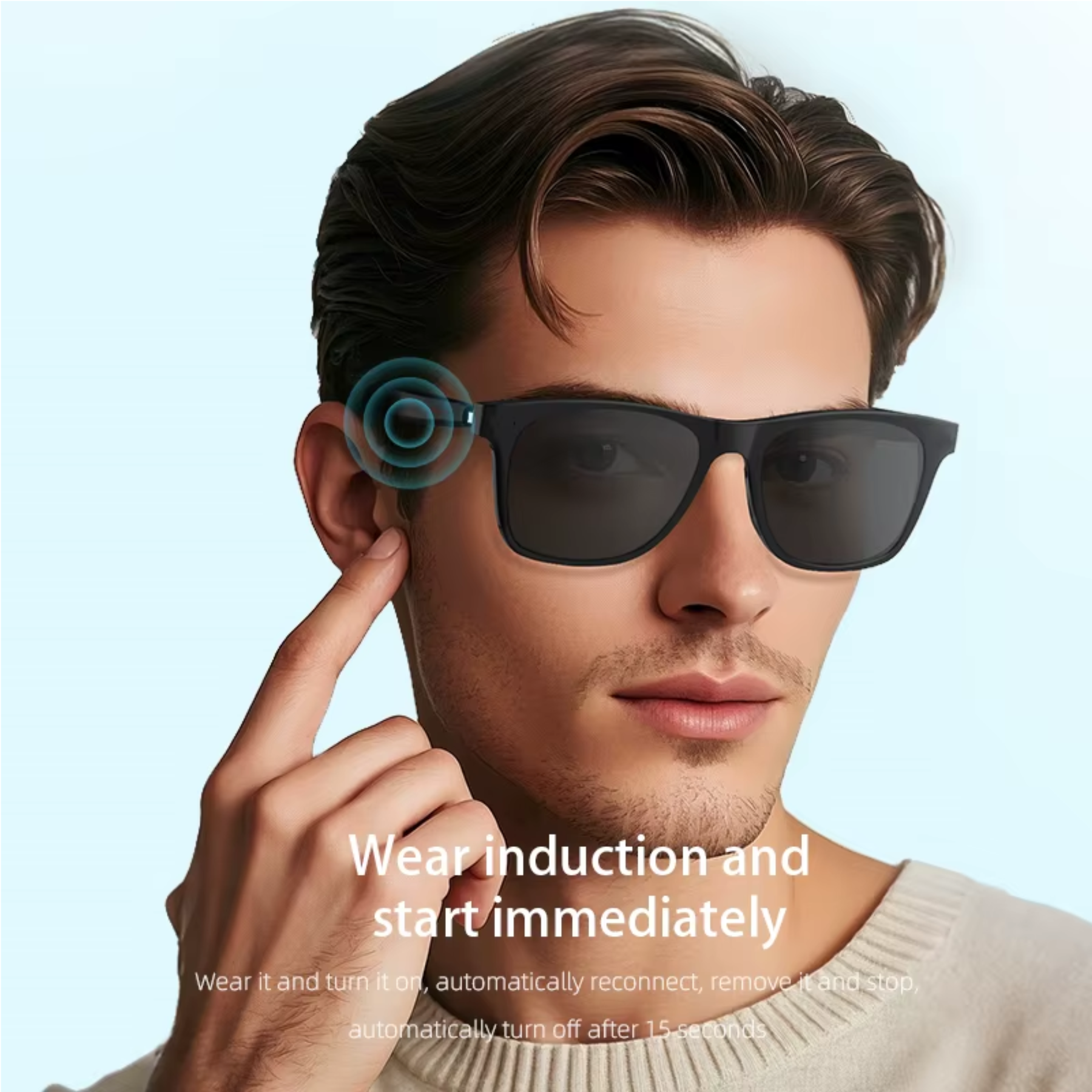Gafas de Audio Inalámbricas, Auriculares con Bluetooth 6,0 Las gafas de audio inalámbricas con Bluetooth 6.0 combinan protección visual y tecnología de sonido en un solo accesorio. Incorporan altavoces integrados en las patillas que transmiten audio por conducción o salida direccional, permitiendo escuchar música o atender llamadas sin necesidad de auriculares tradicionales. Su diseño ergonómico y ligero brinda comodidad, mientras que la conexión Bluetooth 6.0 asegura una transmisión estable, de bajo consumo y con alta calidad de sonido. Usos principalesEscuchar música de manera discretaPermiten disfrutar de tu playlist favorita sin usar auriculares convencionales, manteniendo la conciencia del entorno.Atender llamadas manos libresGracias al micrófono incorporado, puedes contestar y hablar sin necesidad de sacar el teléfono del bolsillo.Protección ocularAlgunos modelos cuentan con lentes polarizados o con filtro UV, ideales para proteger los ojos al aire libre.Uso en actividades al aire librePerfectas para ciclismo, running, caminatas o conducción, ya que brindan sonido sin aislar totalmente del entorno.Compatibilidad con dispositivos inteligentesSe conectan fácilmente a smartphones, tablets, laptops y otros dispositivos Bluetooth para música, podcasts o videollamadas.
